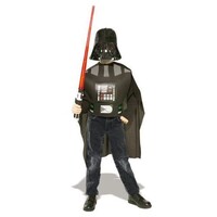 De Darth Vader set voor kinderen in one size fits all maat bestaat uit een Darth Vader cape, masker, schouderstuk en lichtzwaard.